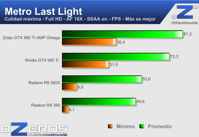 | Modelo | Zotac Geforce GTX 980 TI AMP Omega | GTX 980 | GTX 980 TI | Radeon R9 390 | Radeon R9 390x |