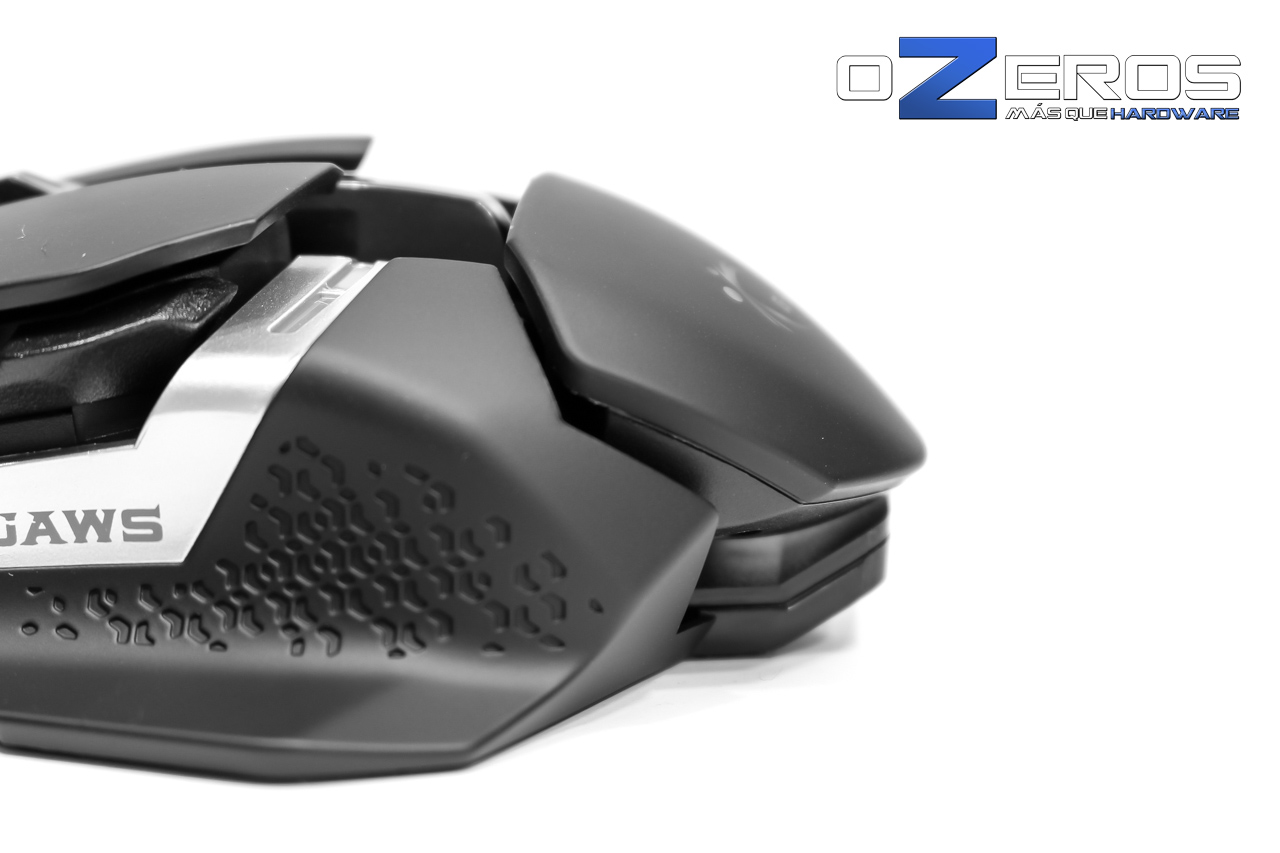 Tenemos una herramientas especial la cual permite ajustar la altura de la parte posterior de mouse, además podemos desmontar los costados y remplazarlos por las piezas incluidas en los accesorios con los que cambiamos de diestro a zurdo, finalmente apreciamos lo simple que instalar los pesos adicionales.