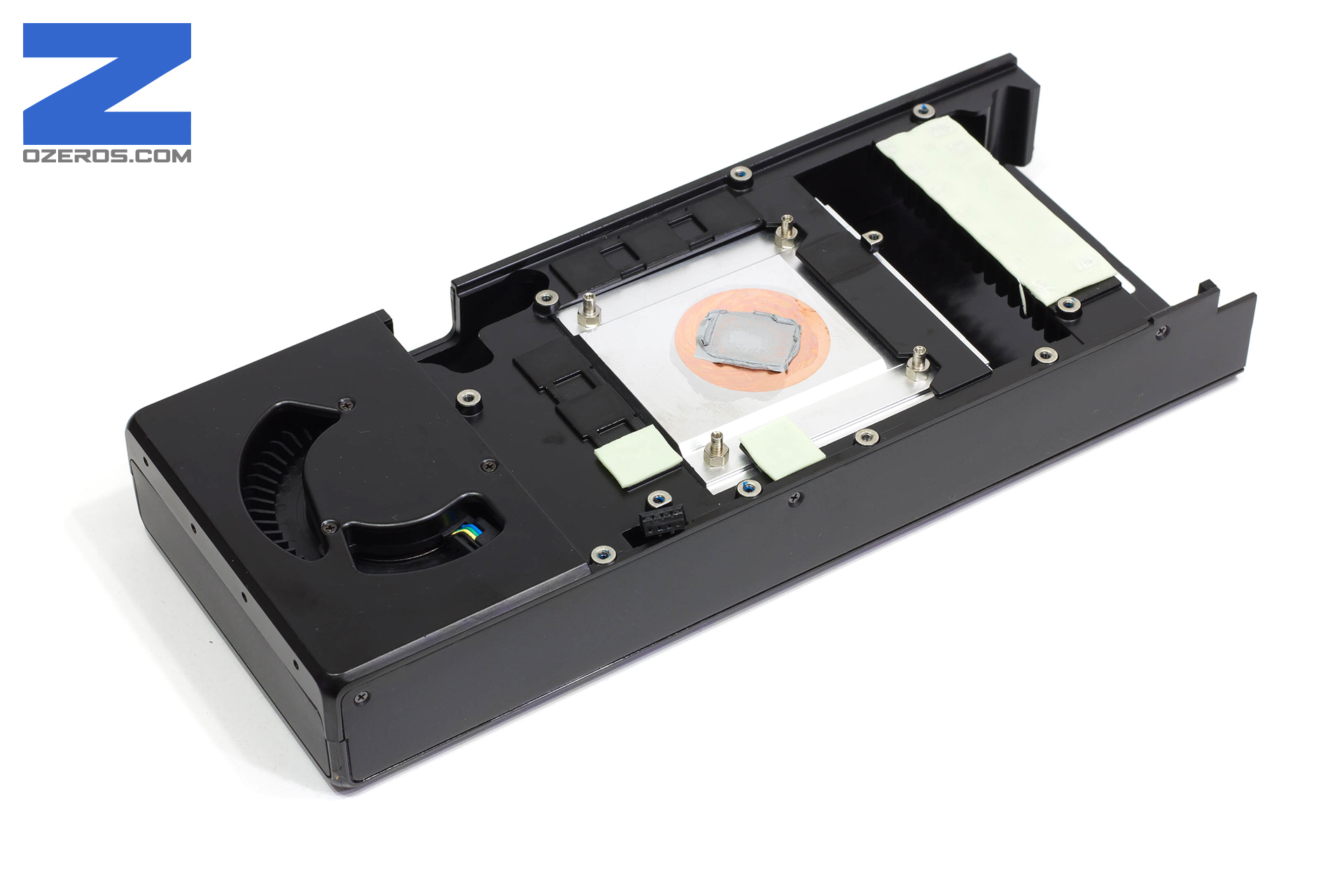 Luego de remover el sistema de refrigeración quedan en evidencia las pequeñas dimensiones de la RX 480. Su sistema de sujeción es bastante simple y vemos que el cooler es de aluminio con el centro de cobre. Pasando netamente a la tarjeta, vemos un PCB bastante poblado; encontramos el pequeño Polaris 10, nombre del núcleo que le da vida a la Radeon RX 480. Este cuenta con 6 fases de poder acompañadas de bastantes capacitores de estado sólido, vemos los 8 chips de memorias que totalizan 8GB. Tenemos un primer plano del conector PCI-e de 6 pines y finalmente el conector del ventilador.