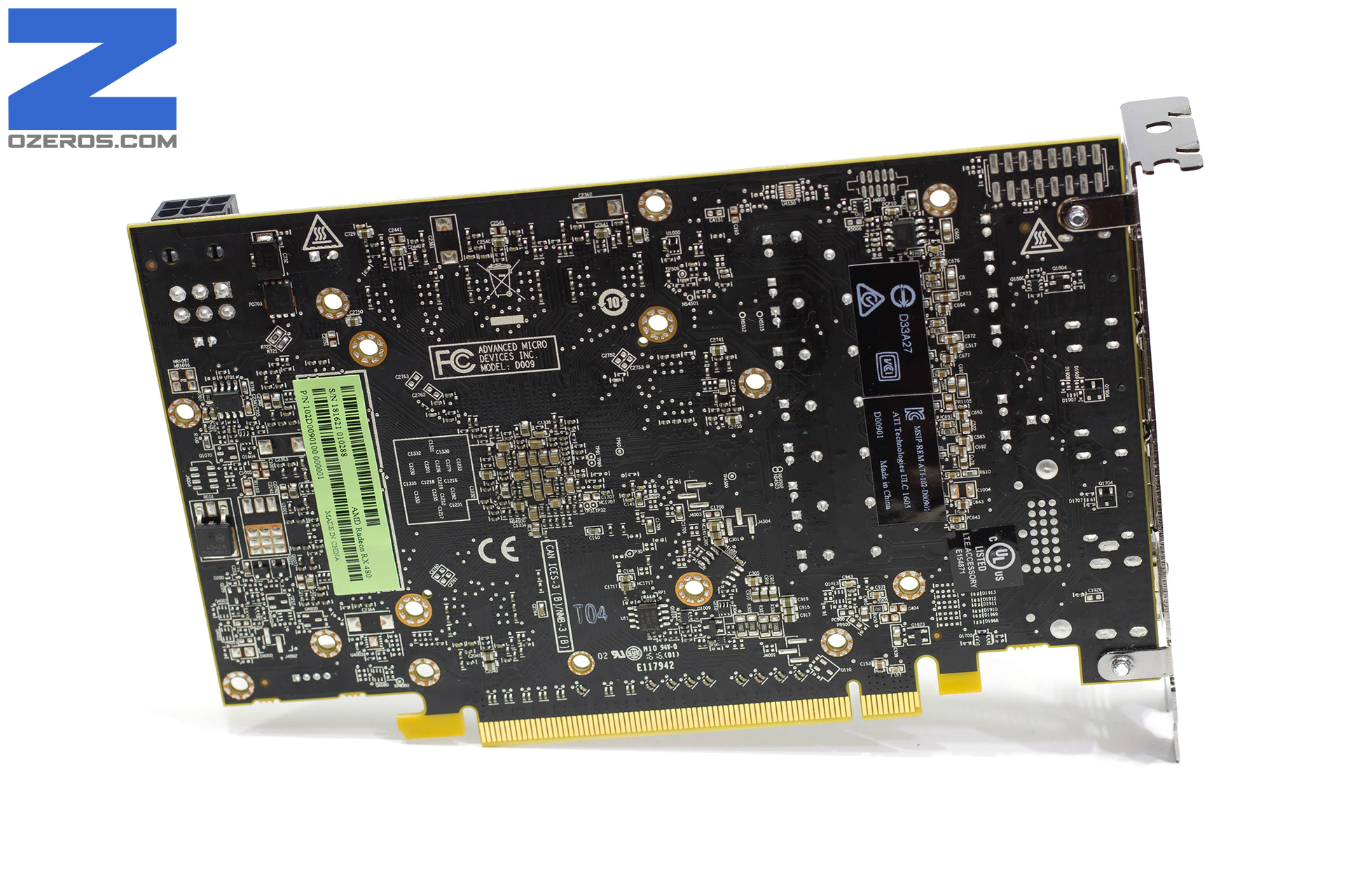 Al dar una primera mirada a la Radeon RX 480 vemos un diseño estilo “caja” con un ventilador tipo blower en color negro y con el logo “Radeon” bastante presente en varios lugares de la tarjeta. Al voltear la tarjeta vemos que el PCB es bastante pequeño, además vemos el sistema de sujeción de la refrigeración del tipo X, encontramos el solitario conector de 6 pines, el cual nos entrega 75W, sumados a los 75W del puerto PCI-e nos dan los 150W de consumo teórico de la tarjeta. Y finalmente en las salidas de video contamos con un puerto HDMI y 3 DisplayPort.