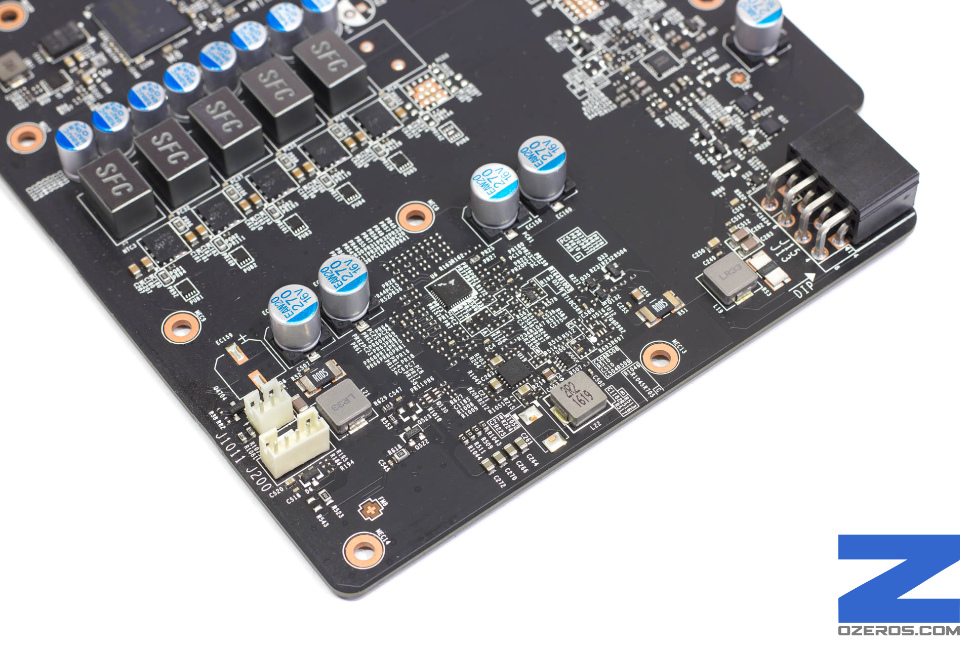 Luego de remover bastantes tornillos nos es posible desmontar completamente el sistema de refrigeración, vemos el Twin Frozr VI que en este caso incorpora 5 heatpipes que atraviesan las aletas de aluminio del disipador, apreciamos el backplate y el disipador para memorias, mosfets y fases de poder. Pasando netamente a la tarjeta vemos un PBC bastante grande, donde encontramos al GP106, núcleo que le da vida a la Geforce GTX 1060 rodeado de 6 módulos de memoria GDDR5 fabricados por Samsung. En el sector encargado de la alimentación vemos un sistema de 5+1 fases de poder con 6 mosfets y varios condensadores de estado sólido, notamos que quedan espacios disponibles para más fases y mosfets, estos eventualmente podremos verlos completos en otras series de Geforce GTX 1060 de MSI.