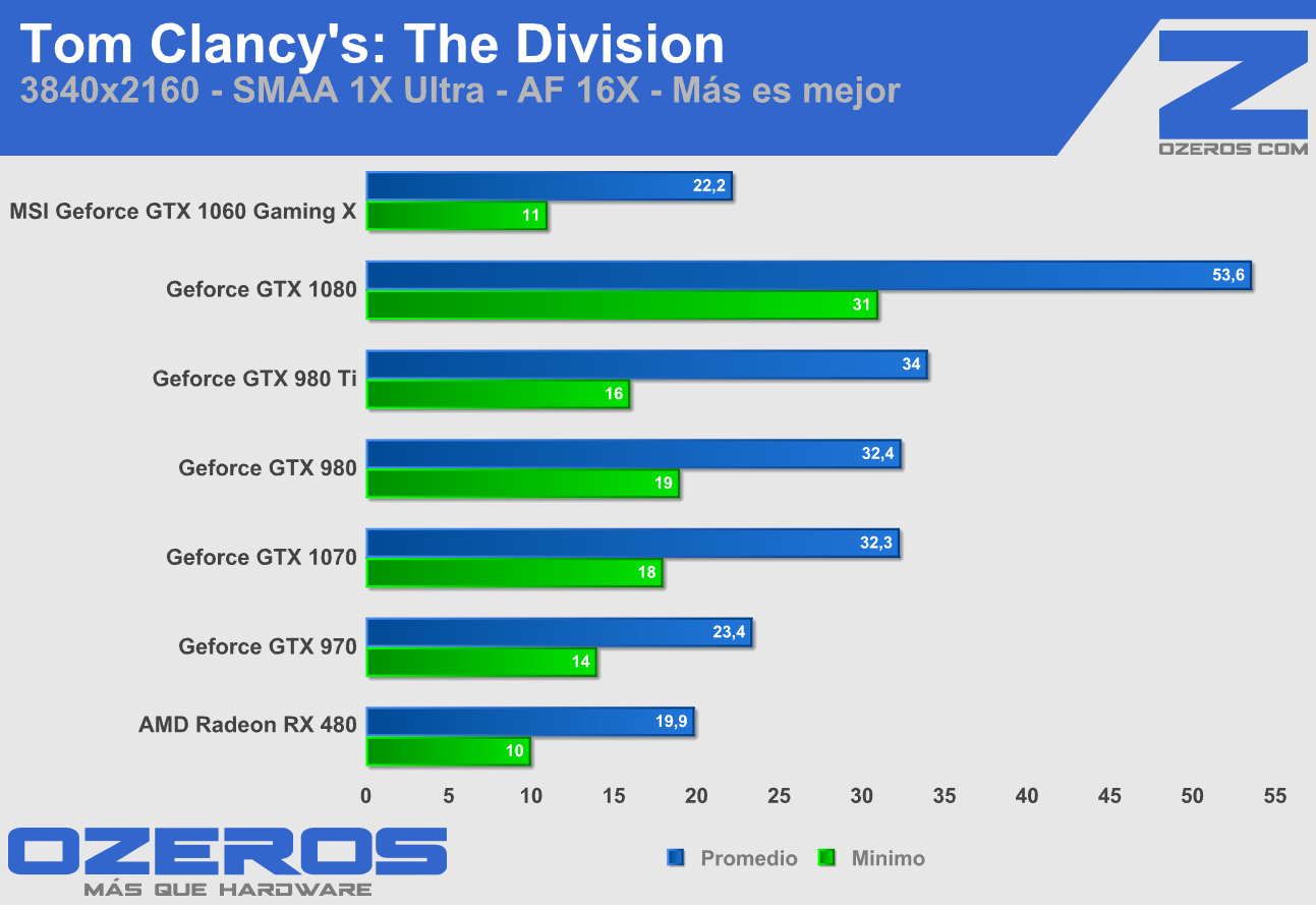 Su rendimiento es bastante sobresaliente, no tiene problemas para ubicarse entre la GTX 980 y la GTX 980 Ti en casi la totalidad de las pruebas realizadas, a esto debemos sumarle su precio que es de solo $249 dólares, posicionándose por escasos 10 dólares sobre la Radeon RX 480. El consumo de la plataforma completa alcanzo los 252W siendo bastante bueno considerando el excelente rendimiento visto.