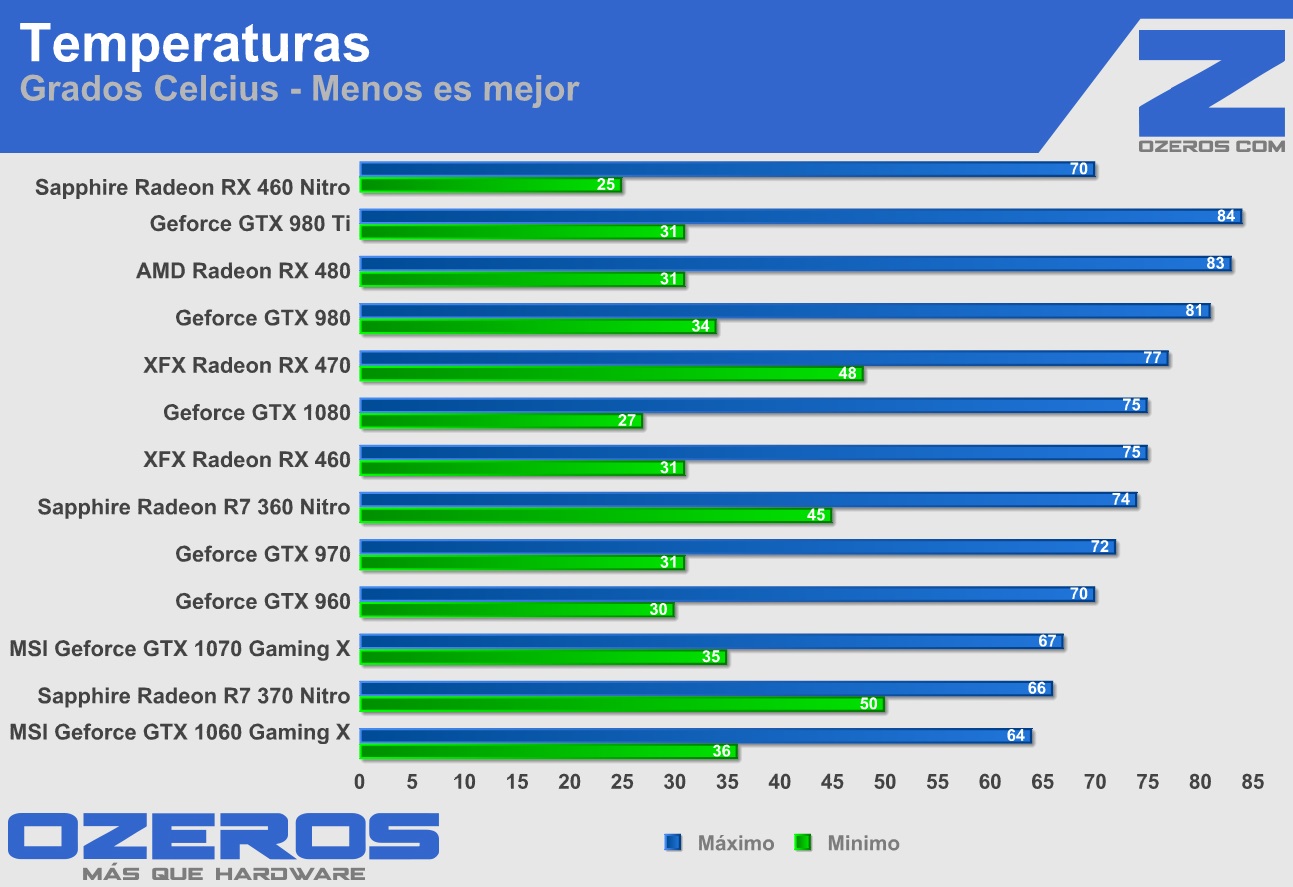 | Tarjeta Gráfica | Sapphire Radeon RX 460 Nitro AMD Radeon RX 480 XFX Radeon RX 470 Sapphire Radeon R7 370 Sapphire Radeon R7 360 NVIDIA GeForce GTX 1080 MSI GeForce GTX 1070 Gaming X MSI GeForce GTX 1060 Gaming X NVIDIA GeForce GTX 980Ti NVIDIA GeForce GTX 980 NVIDIA GeForce GTX 970 |