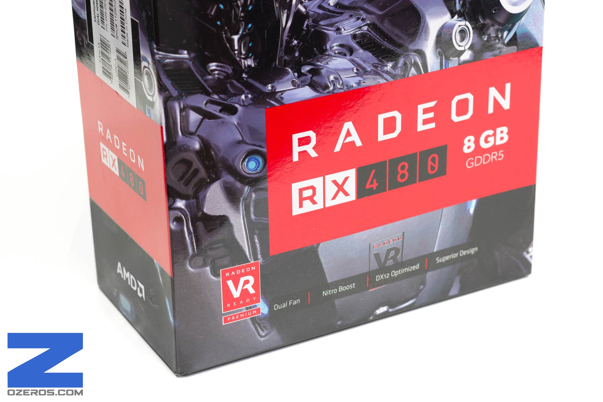 La caja es bastante simple y pequeña, vemos una gráfica de un robot en el frente con el modelo “Radeon RX 480” y se nos hace mención a la serie “Nitro”, por la parte trasera encontramos bastante información sobre la tarjeta y las tecnologías que incorpora. Al abrir la caja vemos una segunda caja que donde está empaquetada nuestra tarjeta gráfica.