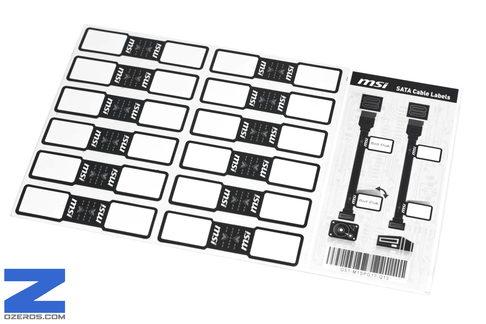 Llegamos a los accesorios, donde vemos bastante variedad, contamos con un puente SLI, dos cables Sata, CD con drivers y utilidades, stickers para facilitar la identificación de nuestras unidades Sata, manual y guia rapida de usuario finalizando con el protector del panel trasero.