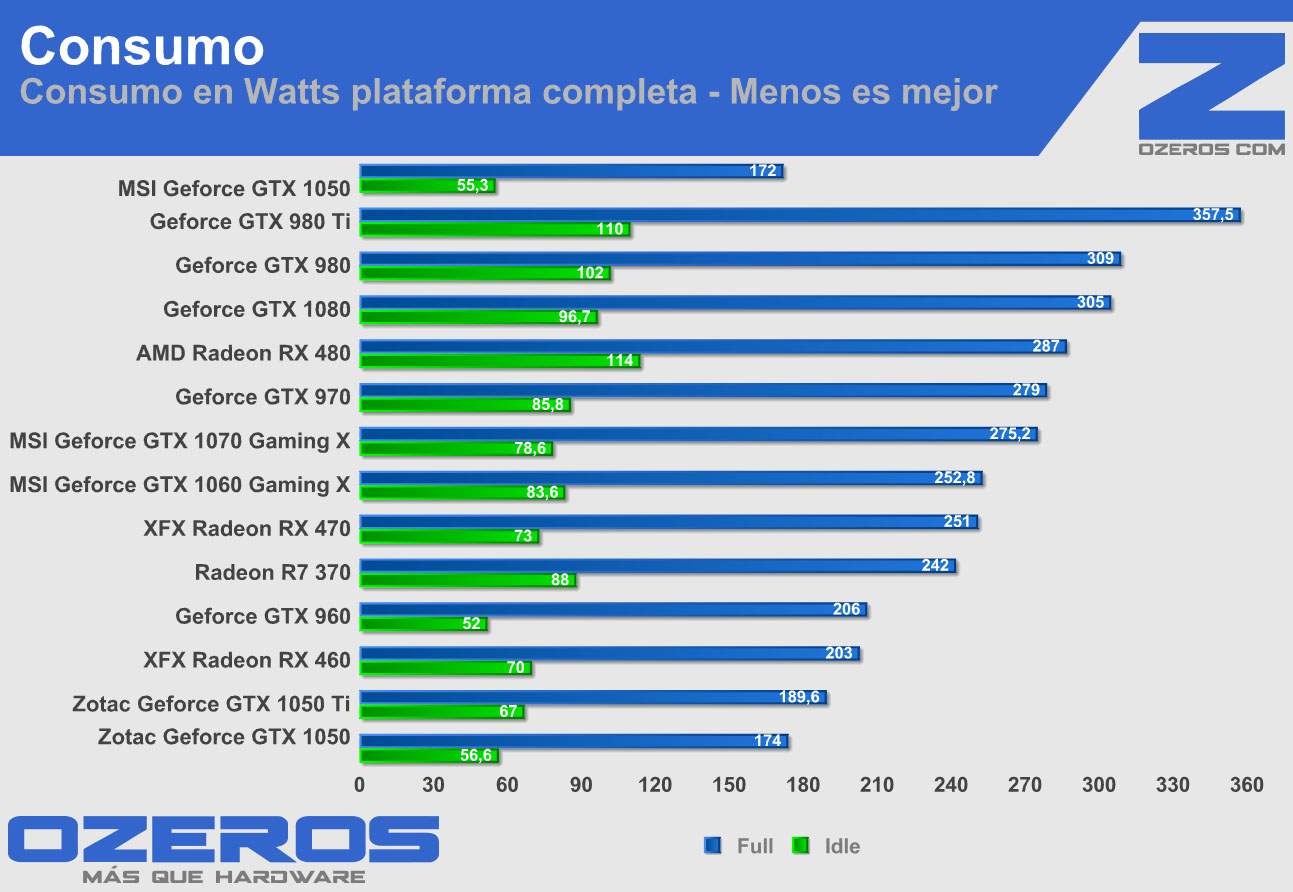 | Tarjeta Gráfica | MSI GeForce GTX 1050 AMD Radeon RX 480 XFX Radeon RX 470 NVIDIA GeForce GTX 1080 MSI GeForce GTX 1070 Gaming X MSI GeForce GTX 1060 Gaming X Zotac GeForce GTX 1050 Ti NVIDIA GeForce GTX 980 Ti NVIDIA GeForce GTX 980 NVIDIA GeForce GTX 970 |