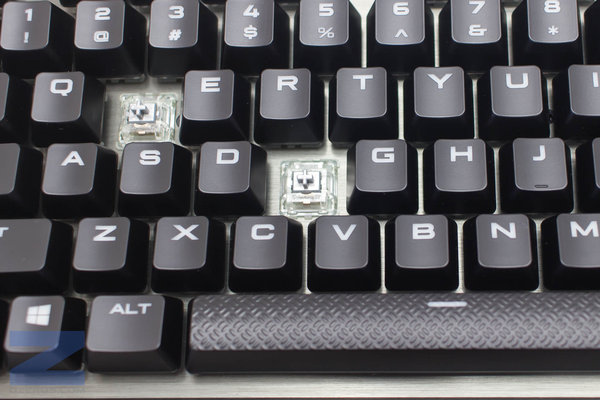 Como podemos ver en las imágenes la versión que recibimos para revisión está en inglés, por lo que carece de las teclas “Ñ” y “<>”. Contamos 6 teclas macro con grabación sin uso de software y teclas multimedia que permiten controlar la música y el volumen de tu equipo. El tecleo es sumamente rápido y sin mayores complicaciones gracias a la incorporación de los switches Cherry MX Speed RGB, los cuales posen un color gris.