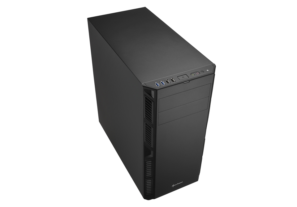 Así como ocurre en los últimos gabinetes de Sharkoon, el panel frontal viene en un diseño sin cables y está diseñado para una instalación fácil, de por ejemplo, unidades de 5.25″. Filtros de polvo desmontables detrás del panel frontal y en la parte inferior protegen el hardware de la suciedad. Por encima del panel frontal, se ofrecen dos USB 3.0, USB 2.0 y puertos de audio.