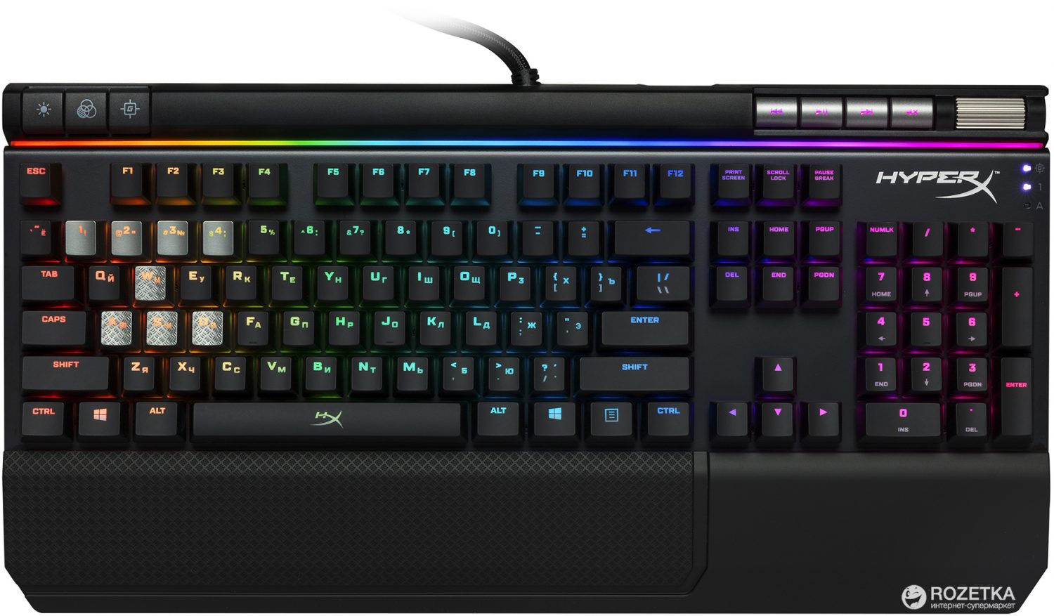 El HyperX Alloy Elite RGB, reconocido por su excelencia en diseño en el 2018, ofrece personalización de color con el software NGenuity. El teclado permite personalizar hasta tres perfiles de iluminación que se pueden guardar directamente en la memoria interna del teclado para utilizarlos en cualquier lugar. Alloy Elite RGB está diseñado con un sólido marco de acero, cuenta con botones multimedia especializados, incorpora una rueda de volumen grande, ofrece botones de acceso rápido a las funciones de brillo, efectos luminosos y modo juego, e incluye un puerto USB 2.0.