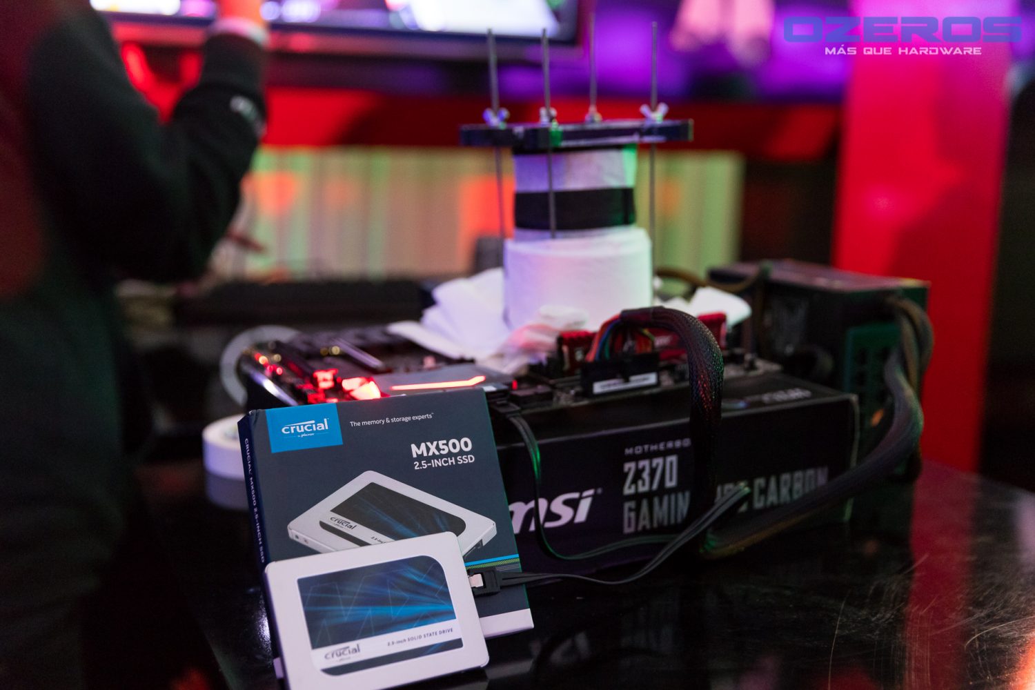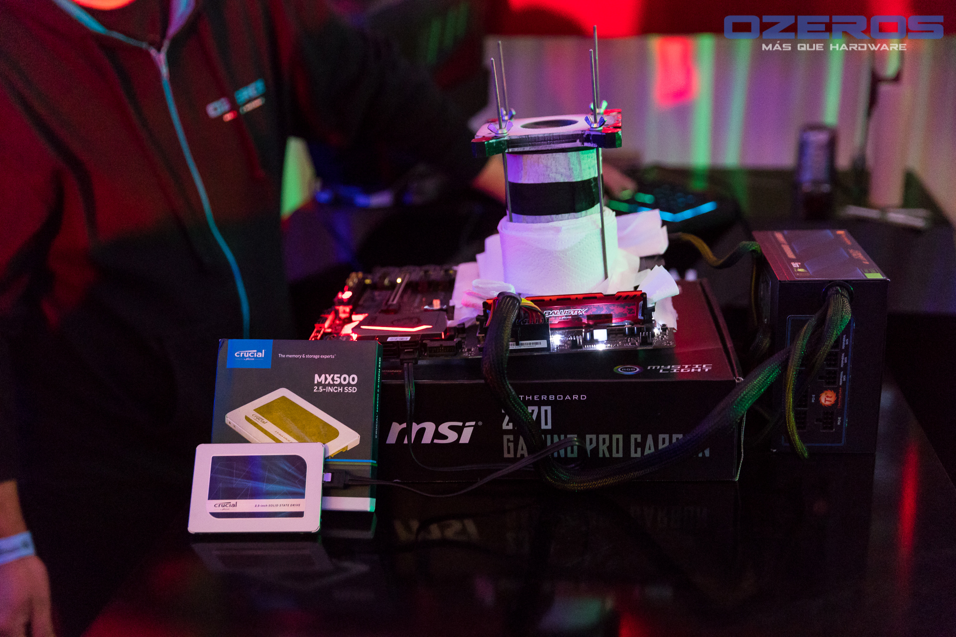 Nuestra presencia permitió la demostración en vivo de overclock con nitrógeno líquido, utilizando un moderno equipo compuesto por una placa madre MSI y componentes Crucial. Los asistentes pudieron conocer de forma cercana lo que es el overclock, como se hace y de pasada aprender un poco más sobre esta milenaria técnica que pocos pueden hacer.