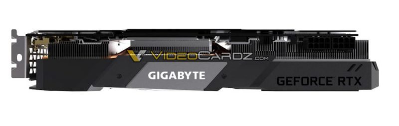 El modelo de Gigabyte, no es acompañado de mucha información, pero al menos podemos ver una vez más la configuración de dos conectores PCIe de 8 pines y algo más de detalles en el panel trasero, donde vemos dos salidas DP, dos HDMI y un puerto USB Type-C para realidad virtual.