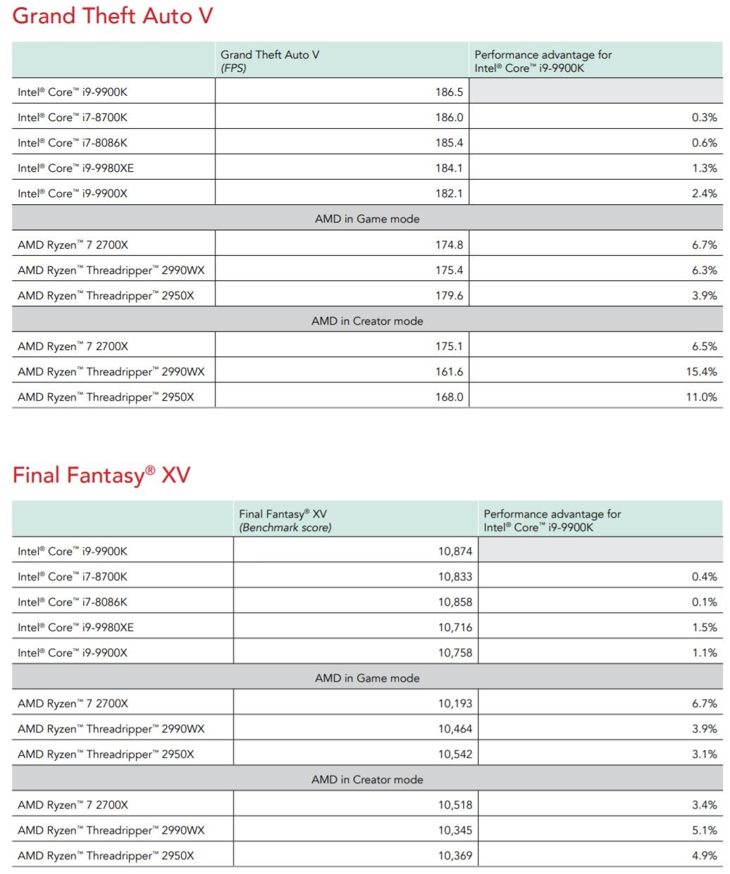 Ryzen 7 2700X Modo Creator  (FPS) Modo Juegos (Test original – FPS) Intel 9900K