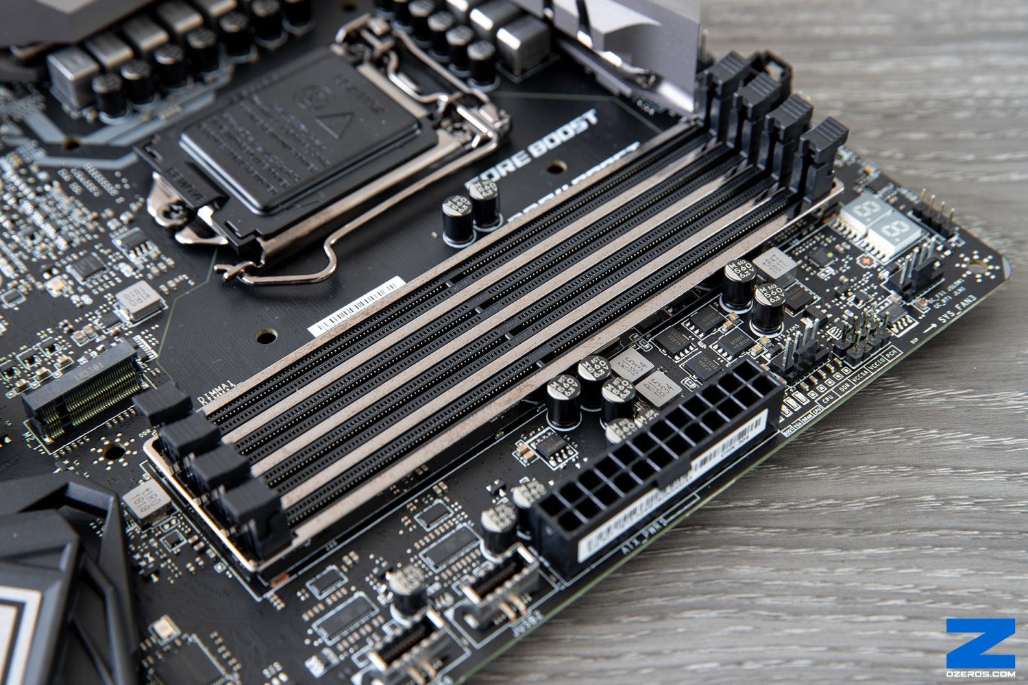 La placa en si misma destaca por tener un factor de forma ATX, un total de 3 puertos PCIe de tamaño completo y 4 zócalos de memoria RAM en configuración dual-channel. En el sector del CPU vemos el socket LGA 1151(v2) para procesadores Intel de octava y novena generación, con un sistema de 13 fases de poder, doble conector de energía de 8 pines y chips de control digital para ofrecer overclock rápido y seguro incluso a los procesadores más demandantes, como el Core i9-9900K de 8 núcleos y 16 hilos de procesamiento.