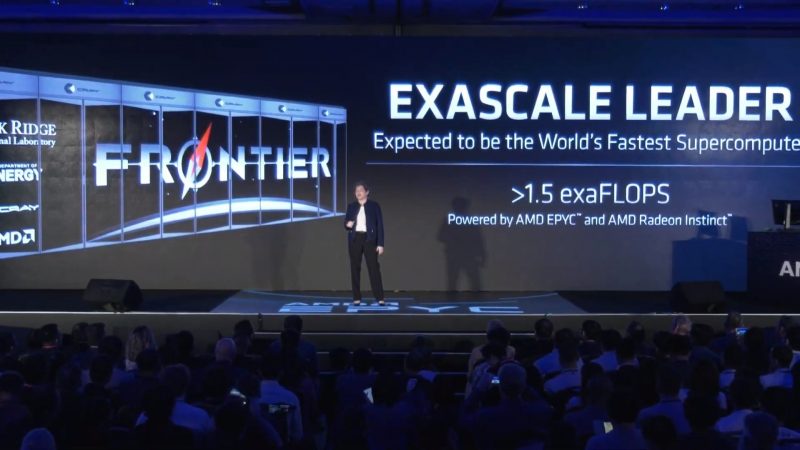 Dentro de la misma conferencia, Lisa Su, CEO de AMD, mencionó que AMD fue la empresa elegida para construir un supercomputador con una potencia de 1.5 exaFLOPS, basado en EPYC y las aceleradores de video AMD Instinct. Este equipo, entre otras cosas, será utilizado para investigar cambios de clima, medicamentos, mutaciones genéticas y otras tareas que requieran un alto nivel de poder de calculo.