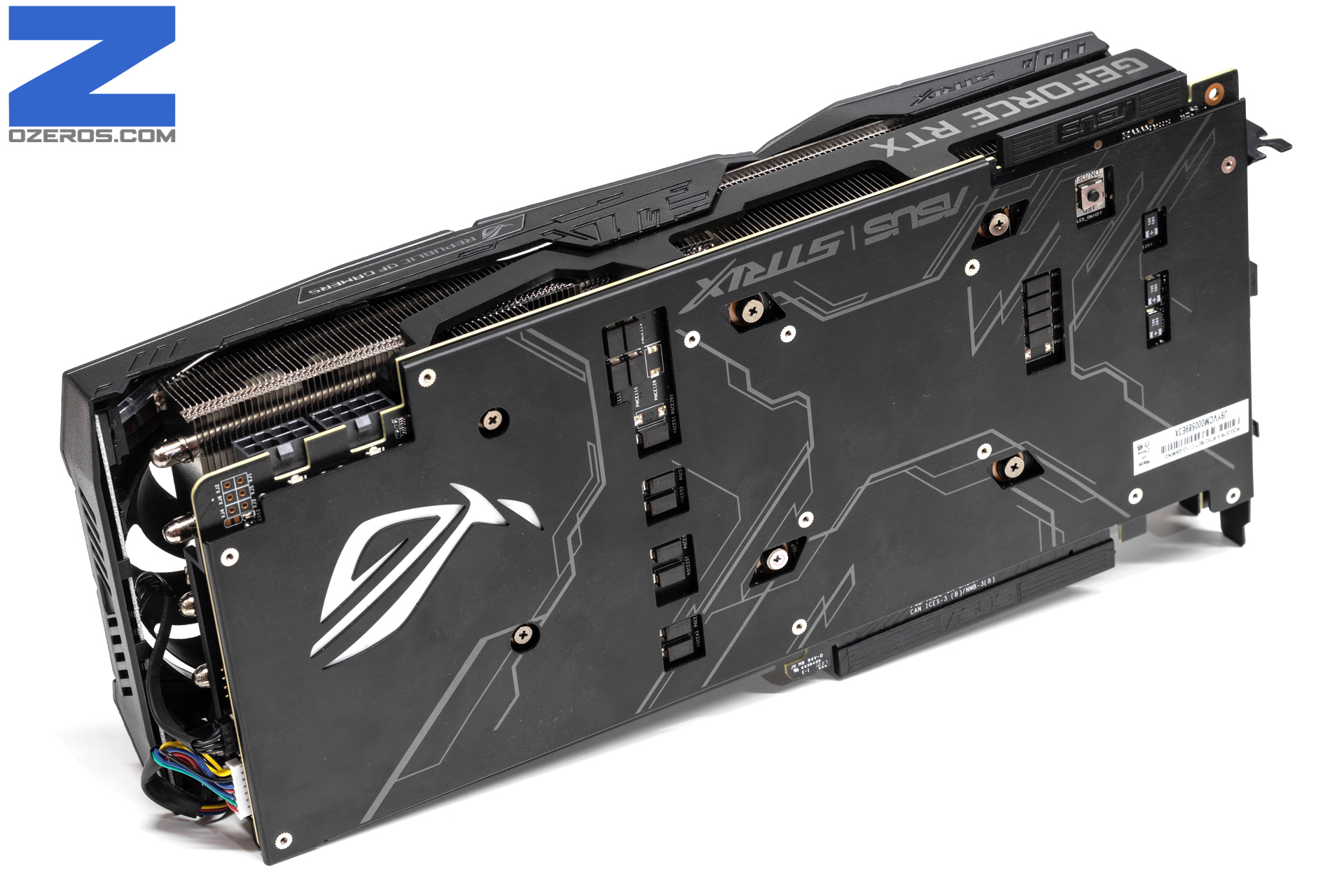 La ASUS ROG Strix RTX 2080 Ti O11G Gaming ocupa 2,7 Slots de espacio, posee tres ventiladores. En el panel frontal de la tarjeta, tenemos los conectores, los cuales son dos DisplayPort 1.4 y dos HDMI 2.0b. y el conector USB Type-C. En comparación con el modelo referencial de NVIDIA, ASUS ha decidido cambiar un conector DisplayPort por un conector HDMI.