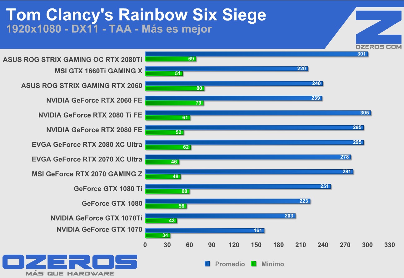 | Tarjeta Gráfica | NVIDIA GeForce GTX 1070 NVIDIA GeForce GTX 1070 Ti NVIDIA GeForce GTX 1080 NVIDIA GeForce GTX 1080 Ti MSI GeForce GTX 1660 Ti Gaming X NVIDIA GeForce RTX 2060 ASUS ROG Strix RTX 2060 A6G Gaming EVGA GeForce RTX 2070 XC ULTRA GAMING MSI GeForce RTX 2070 GAMING Z EVGA GeForce RTX 2080 XC ULTRA GAMING NVIDIA GeForce RTX 2080 NVIDIA GeForce RTX 2080 TiASUS ROG Strix RTX 2080 Ti O11G Gaming |