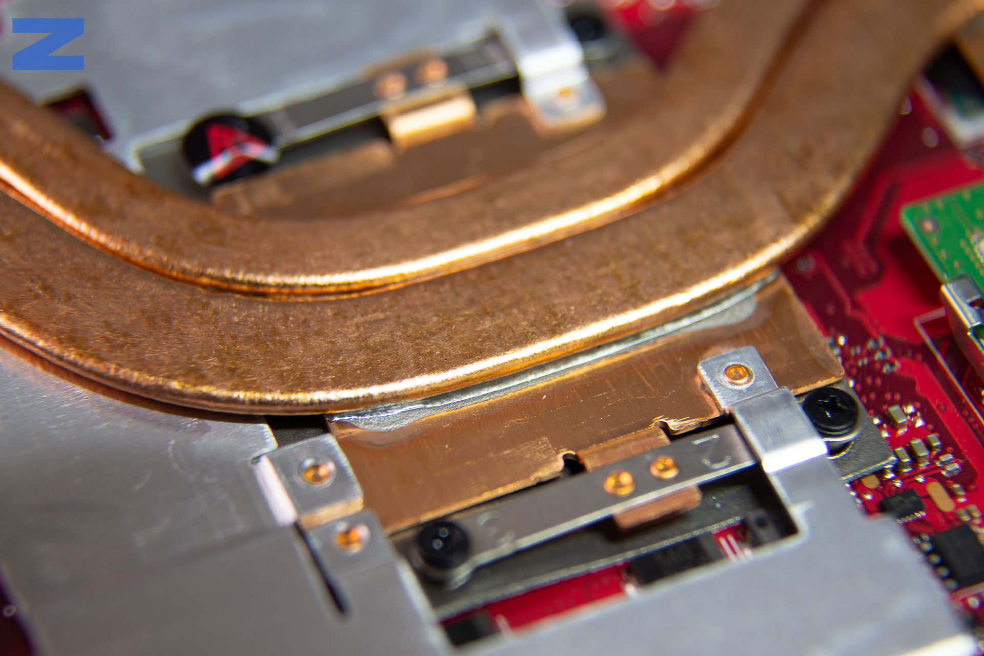 Para disipar el calor del procesador y tarjeta gráfica contamos con un sistema de 2 ventiladores blower que comparten 2 heatpipes para todo su sistema.