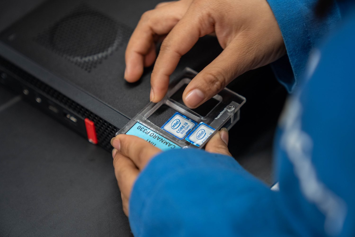Luego de ponernos nuestra ropa antiestática comenzamos el recorrido partiendo por las salas de capacitación de personal, aquí Herón Ramos, Gerente de la Planta Lenovo Monterrey nos contaba como se hacía la selección de personal la cual para nuestro asombro no tiene ningún requerimiento especial en cuando a conocimientos de computación, informática o experiencia previa ensamblando computadores. Para ello es Lenovo quien se preocupa de capacitar a quien requiera el trabajo evaluando principalmente sus capacidades motricidad, precisión, constancia y velocidad. De esta forma se les clasifica según sus habilidades para trabajar en las distintas áreas de ensamble y otras funciones. Su premisa es que no se rechaza a nadie y todos tienen su oportunidad, los cual personalmente me gustó muchísimo escuchar de un Gerente General de una empresa de esta envergadura.