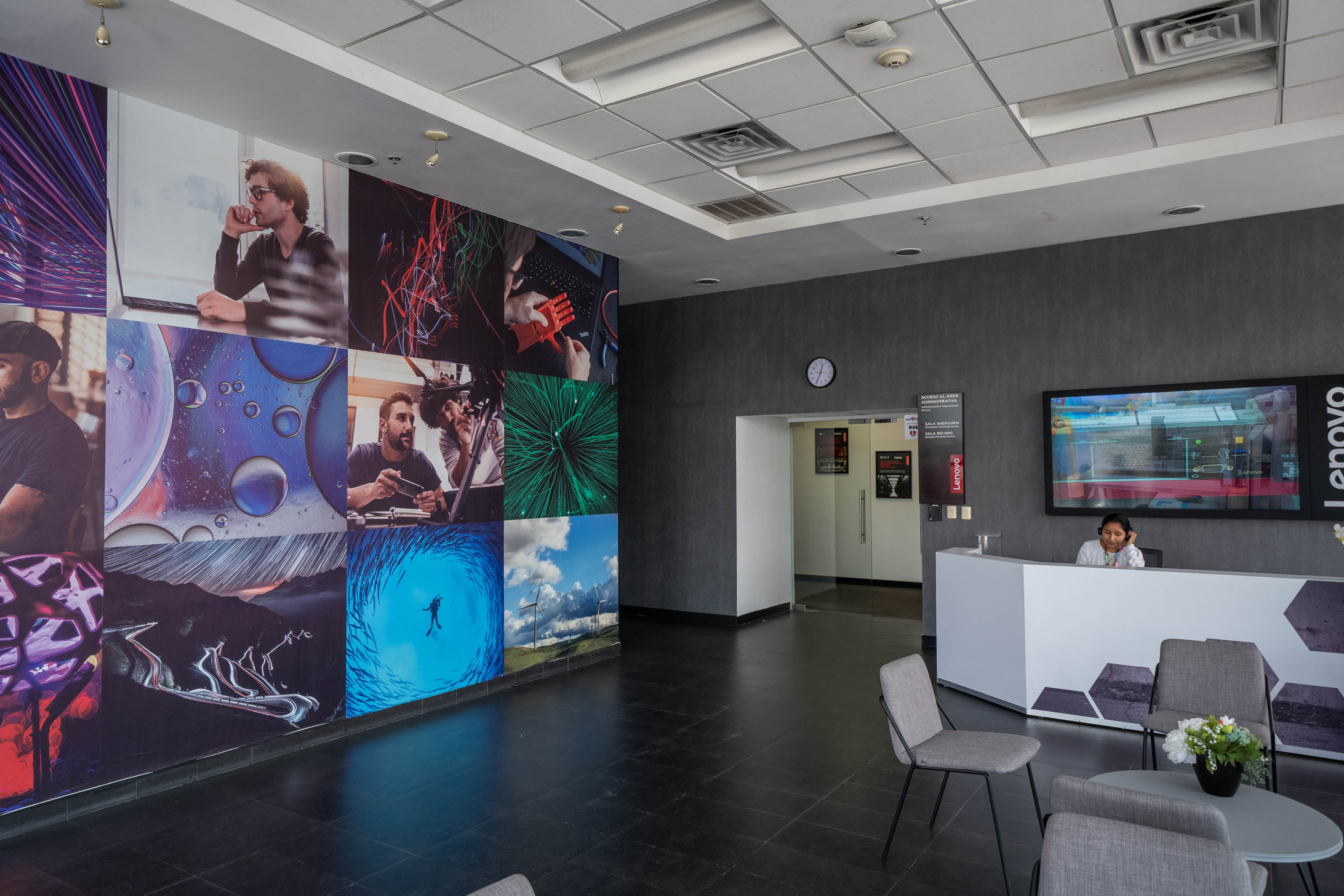 Luego de entrar y pasar por la seguridad necesaria comenzamos nuestro recorrido, primero pasamos por el sector donde Lenovo tiene un centro de desarrollo de ideas, donde cualquier trabajador de la empresa puede hacer aportes o plantear nuevas soluciones, aquí se analizan, se les asigna prioridad y viabilidad.