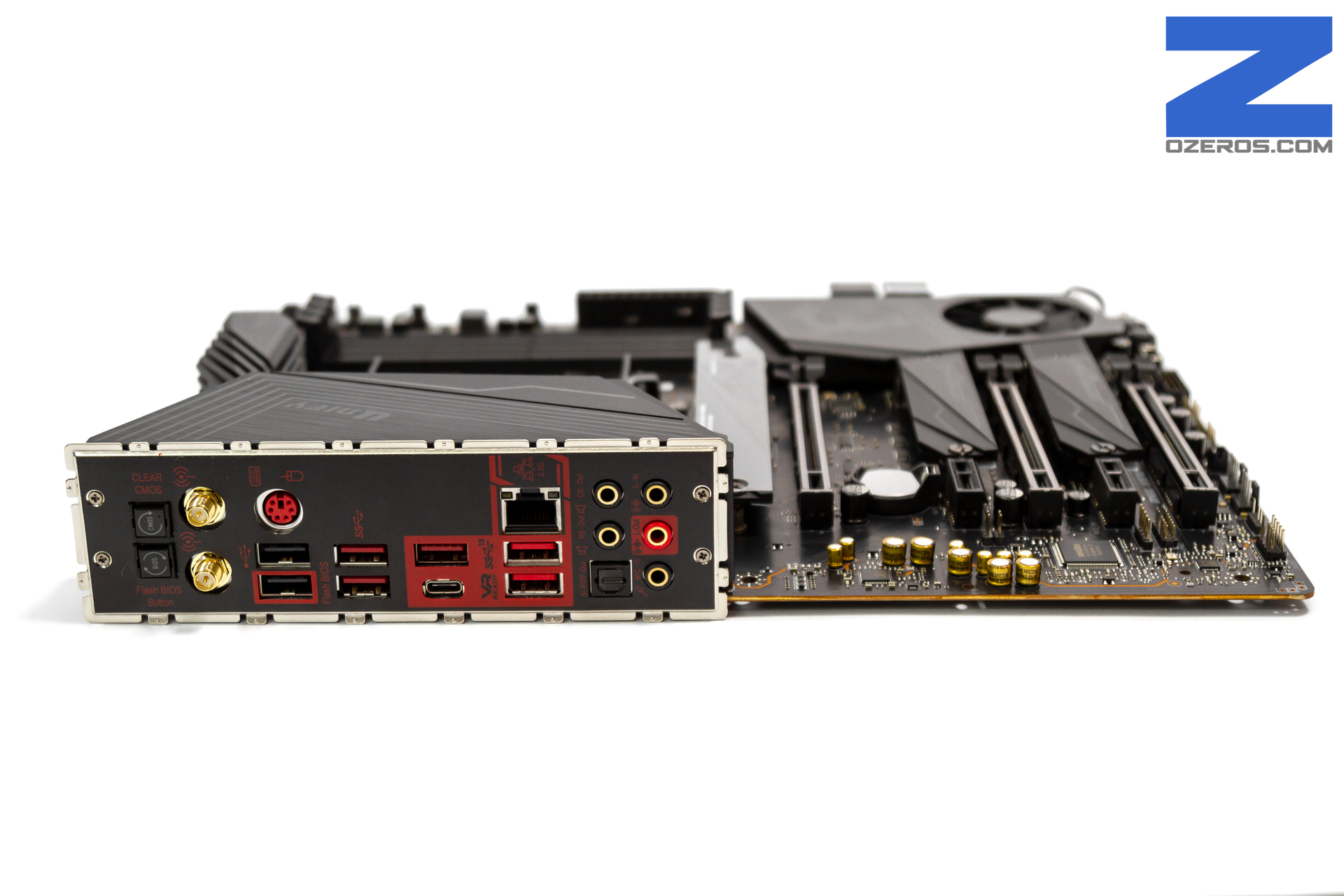 Todo lo anterior con un diseño completamente negro, algo que si bien puede parecer aburrido, el acabado brillante que posee logra una estética que agrada bastante. En el panel trasero, y como viene siendo costumbre en placas de gama alta, posee un I/O Shield integrado a la placa madre, con lo cual nos ahorra un paso al momento de armar un computador.