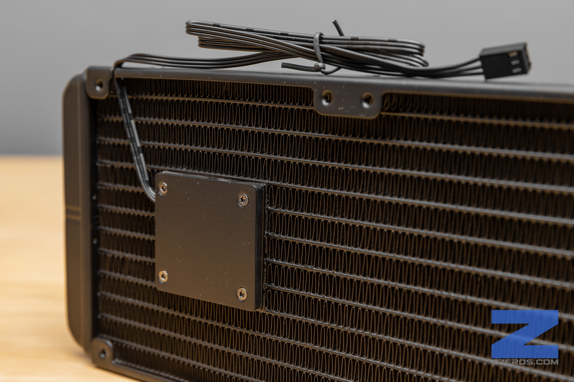 El radiador, construido completamente en aluminio y en un apartado incluye la bomba de agua como mencionamos anteriormente. El motor de esta bomba es de tres fases, por lo que disminuye las vibraciones que se producen y a la vez lo hace más durable en el tiempo. Las mangueras son presentadas en un sleeving bastante robusto, y la movilidad de estas es buena, por lo que ayudará enormemente en la instalación del MSI MAG CORELIQUID 240R.