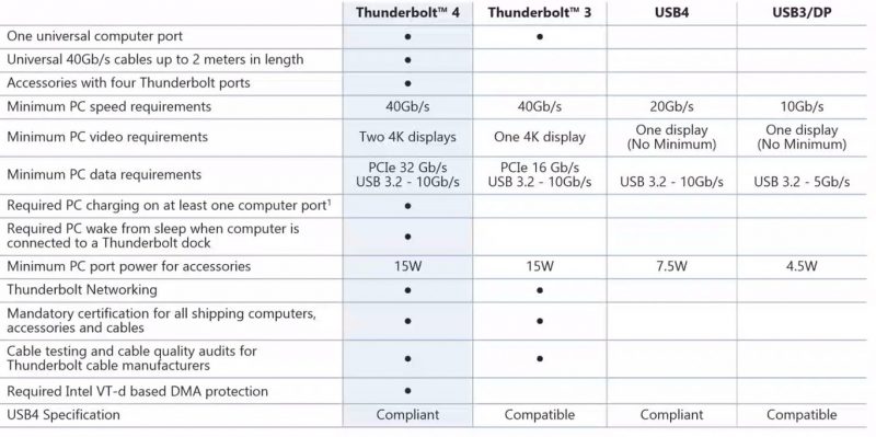 Intel también anunció el controlador Thunderbolt 4 serie JHL8x40, compatible con los cientos de millones de PC y accesorios Thunderbolt 3 existentes. Los kits de desarrollo Thunderbolt 4 y las pruebas de certificación ya están disponibles.