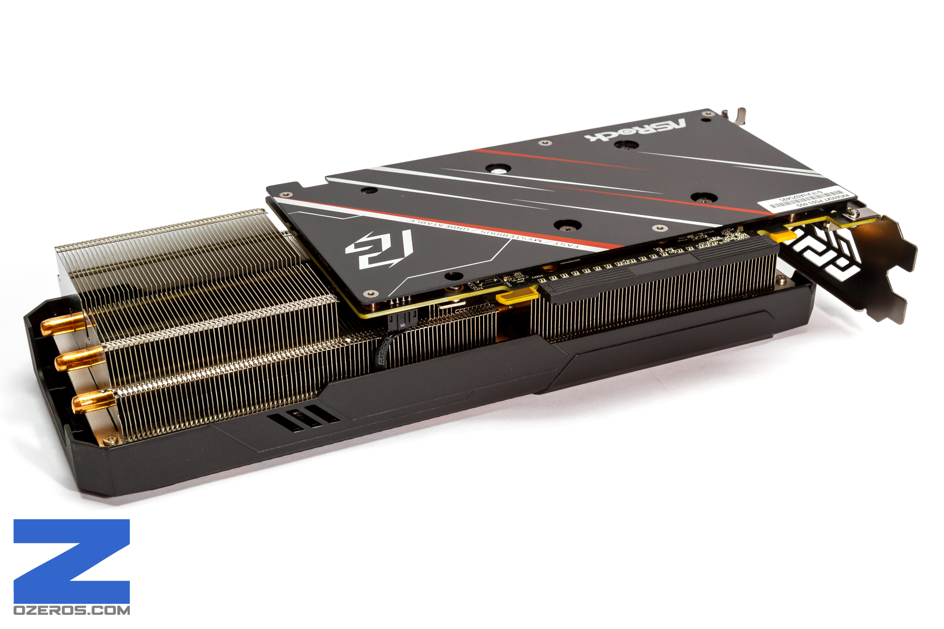 Dentro de ella, vemos en primer lugar el núcleo Navi 10, el cual es enfriado por una densa y maciza solución de aluminio que como mencionamos anteriormente, excede la superficie del backplate lo cual nos hace ver que disipará el calor producido por el GPU y el resto de sus componentes.