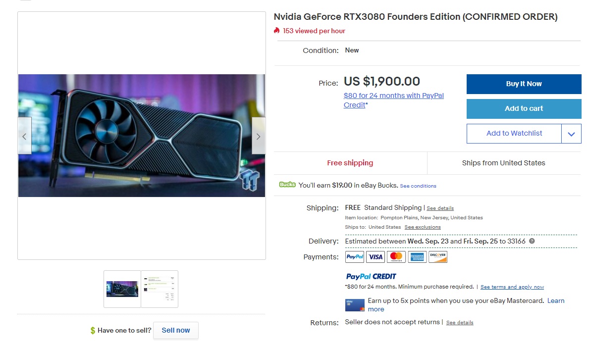 Peor aún, de los pocos que lograron comprar, varios lo hicieron mediante bots, y ya están intentando re-vender la tarjeta en eBay o comercios similares a un precio mucho mayor que el original. Según NVIDIA, para solucionar esto activaron un proceso de revisión manual en varias compras, intentando separar las compras de usuarios legítimos de las compras de usuarios que utilizaron bots.