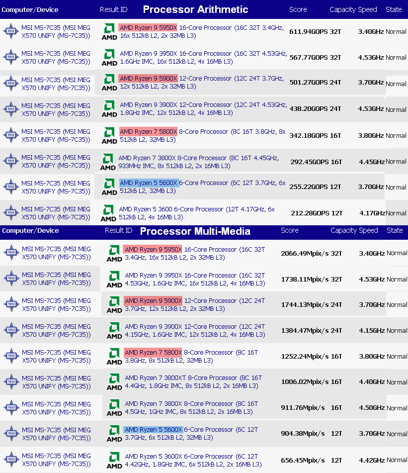 Este CPU con 6 núcleos y 12 hilos, 32 MB de cache L3 y frecuencia base de 3.7 GHz con 4.6 GHz boost, lograría 255.22 GOPS y 904.38 Mpix/s en las pruebas de aritmética y multimedia, respetivamente, 13,9% y 36.5% más que el Core i5-10600K en los mismos test. Este último modelo lograría 224.07 GOPS y 662.33 Mpix/s. Los números filtrados indican por lo bajo que Zen 3 ofrece una interesante mejora de rendimiento, que esperamos se traduzca bien cuando las pruebas sean en un entorno real con juegos y aplicaciones.