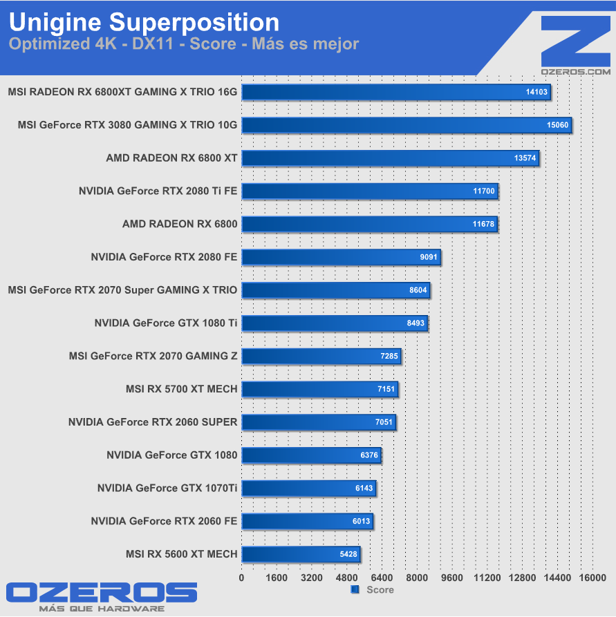 Para la comparativa usaremos la plataforma mas nueva a disposición, que en este caso se trata de un procesador Intel Comet Lake i9 10900K. La razón detrás de esta plataforma de pruebas es que en Ozeros llevamos mucho tiempo utilizando Intel como la plataforma de pruebas por el rendimiento que proporciona en juegos y la carencia de cuello de botella para tarjetas grandes. Pero, esto ha cambiado en el ultimo tiempo. Desafortunadamente, no contamos con una plataforma AMD tope de línea actual (Ryzen 9 5900X o Ryzen 9 5950X) para realizar las pruebas graficas.