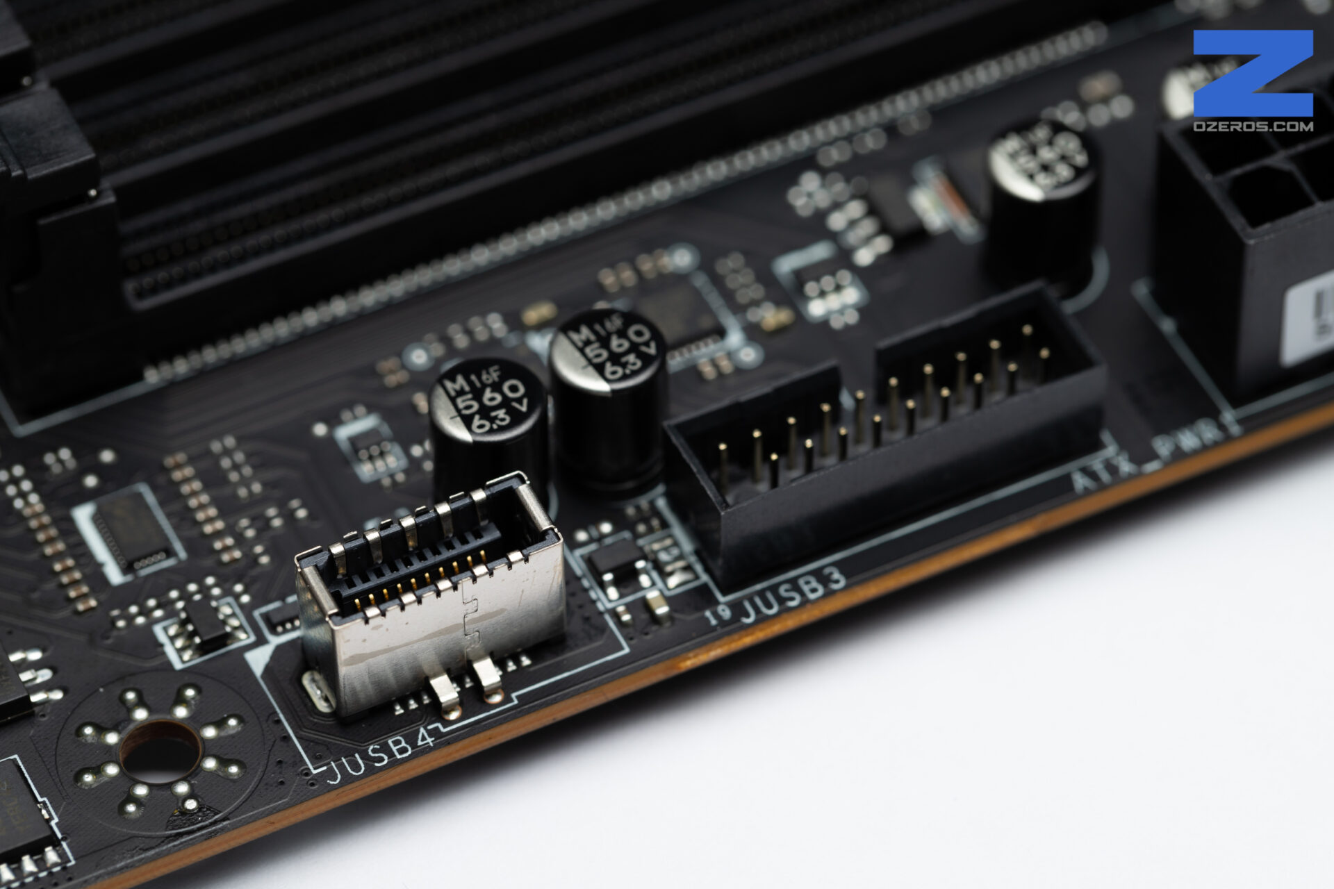 Por el costado tenemos 6 puertos Sata de 6Gbps tradicionales y a su lado las conexiones frontales para USB tipo C y USB 3.0 tradicional.