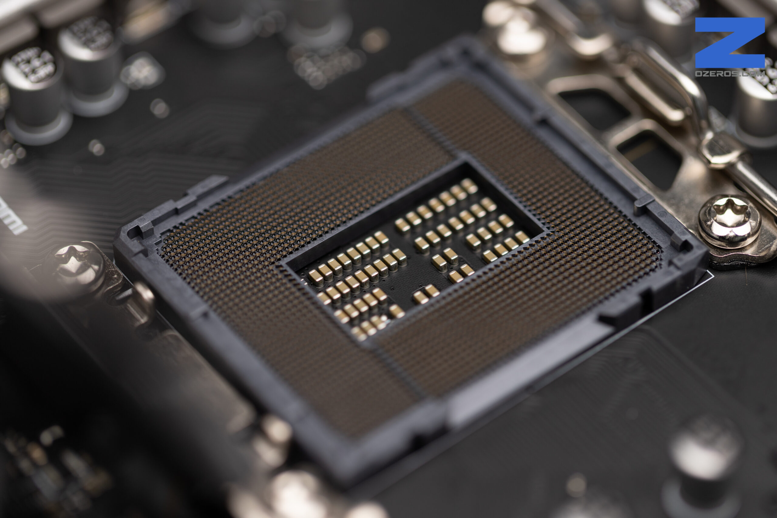 Mirando un poco más de cerca, tenemos en detalle lo que es el nuevo socket LGA1700, los disipadores para cada una de los SSD NVME, headers para conectar USB 3.2 Gen 2 de 10Gbps Tipo C y otro USB 3.2 Gen 2 de 5Gbps tradicional. También incluye headers específicos para el RGB y para las bombas de watercooling.