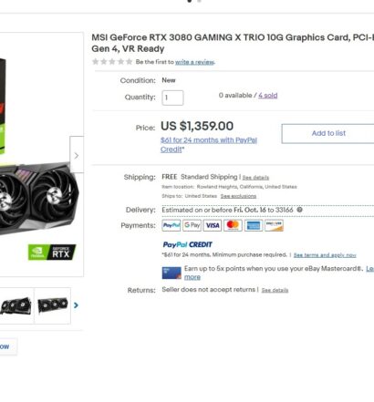 Acusan a MSI de revender sus propias RTX 3000 en eBay a mayor precio que el oficial
