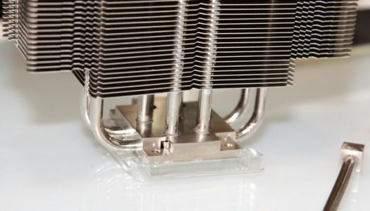 En el marco de la Computex 2014, Noctua presenta un nuevo y extraño disipador. A simple vista se ve como un clásico cooler tipo torre, pero si se fijan en su base verán que no lo es. Lo habitual es ver los heatpipes salir por los costados del bloque que hace contacto con el CPU, pero además de estos aquí salen en vertical.